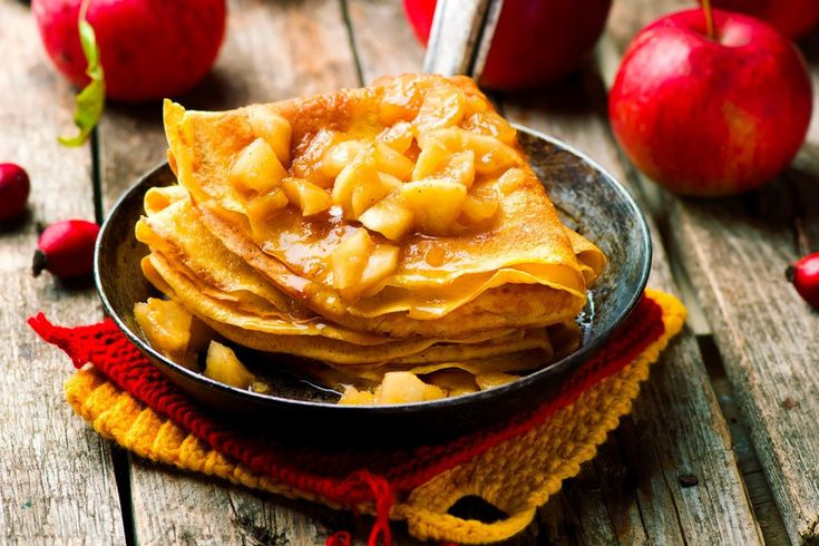 Состав и питательная ценность блинов зависят от того, что замешать в тесто. Если использовать цельные продукты, получится блюдо, в котором больше витаминов, нутриентов и клетчатки. Можно попробовать блины из цельнозерновой пшеничной муки с яблоком и корицей.