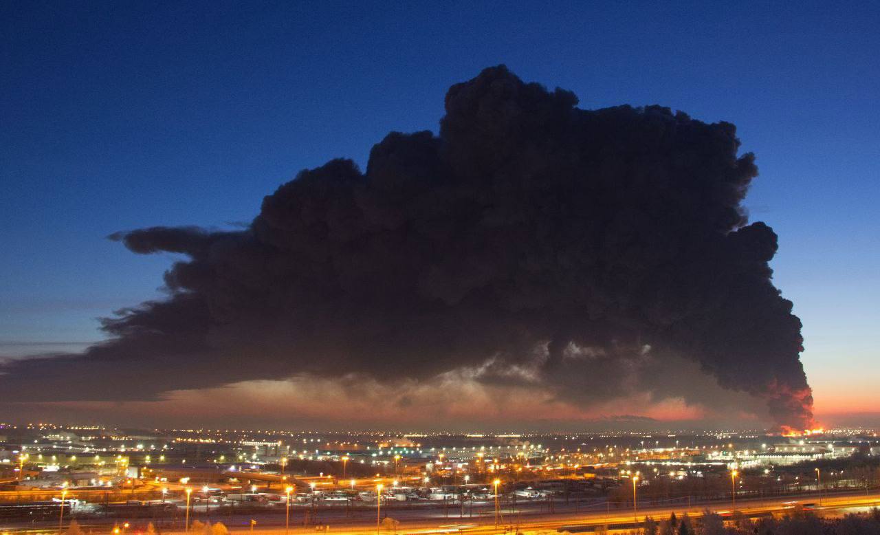 Дым от пожара на складе Вайлдберриз в Шушарах добрался до районов Дыбенко и Купчино