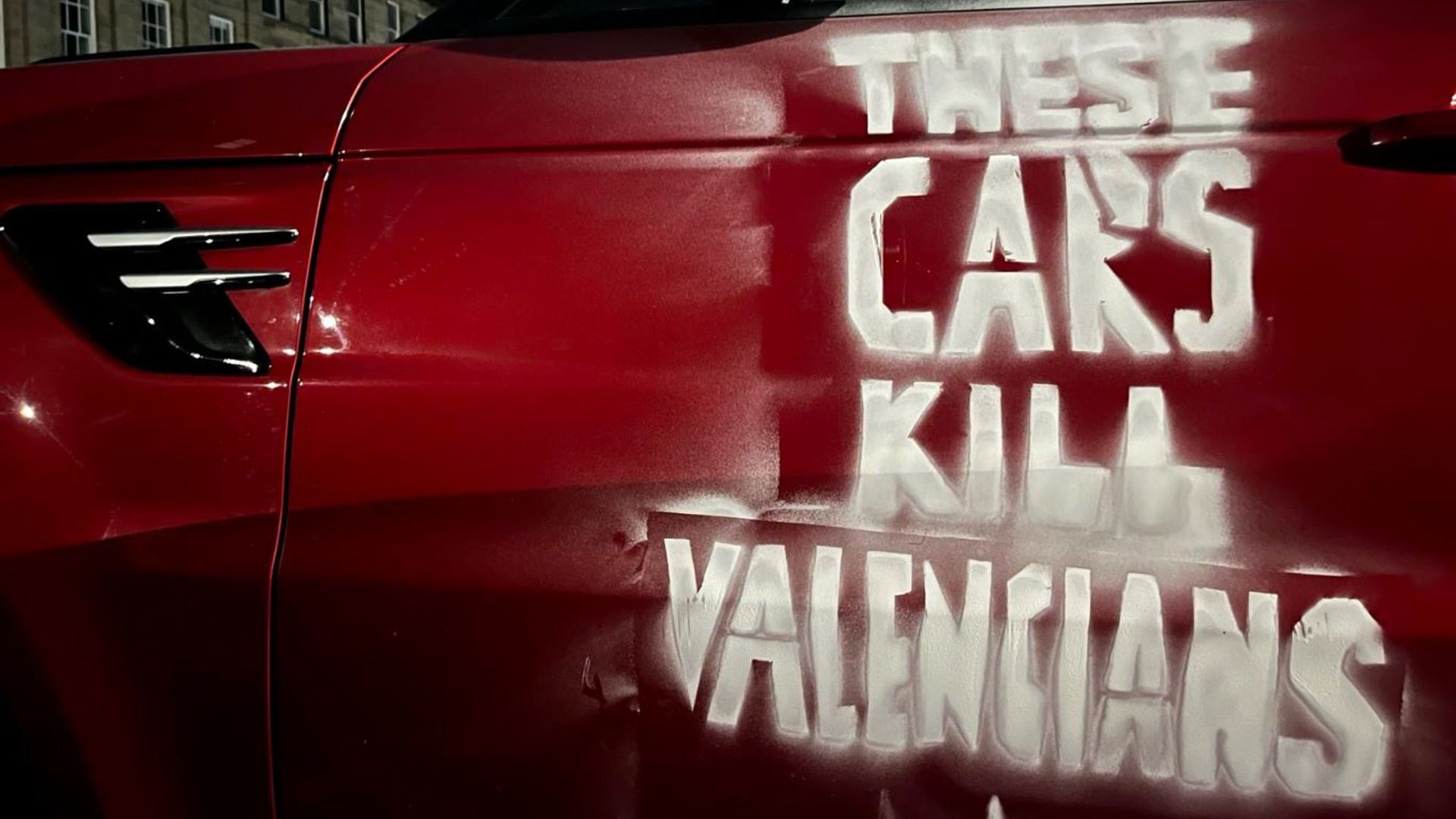"These cars kill Valencians" was daubed on a dark red Range Rover Sport, one post showed.
