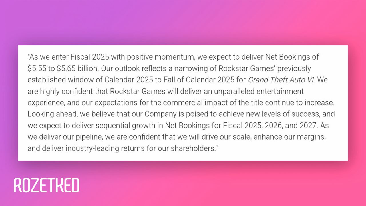 Take-Two сообщила об этом в годовом отчёте. Ранее в сети появились слухи, что релиз могут перенести с весны на осень или даже на 2026 год — частично информация подтвердилась.