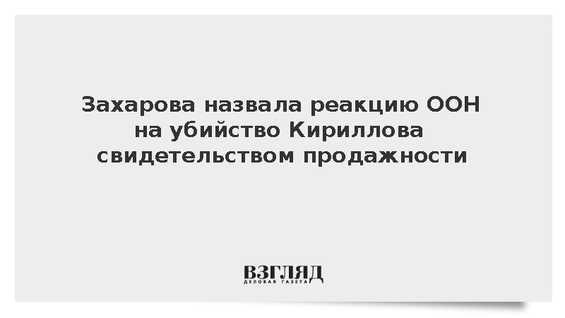 Спикер МИД Мария Захарова раскритиковала реакцию ООН на убийство генерал-лейтенанта Игоря Кириллова, назвав ее продажной, после того как организация не осудила атаку, а лишь призвала к сдержанности.