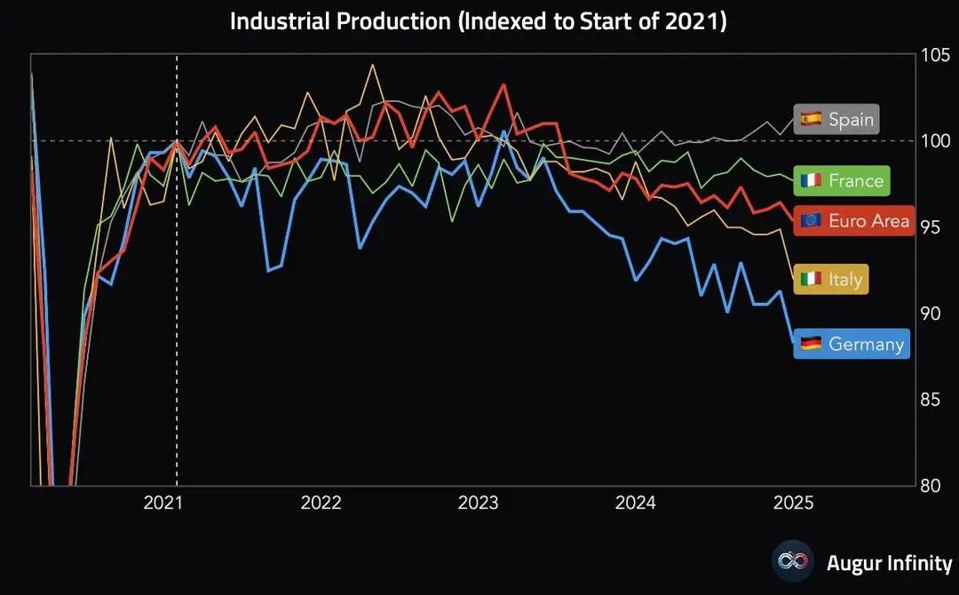 Франция столкнулась с угрозой деиндустриализации. За прошлый год в стране закрылось больше фабрик, чем открылось новых — такой ситуации не было с 2015 года, пишет Le Monde. Авторы публикации отмечают, что в декабре 2024 года уровень промышленного производства был на 8% ниже, чем в допандемийном январе 2020 года. За прошлый месяц в стране уже закрылось 20 заводов. @banksta
