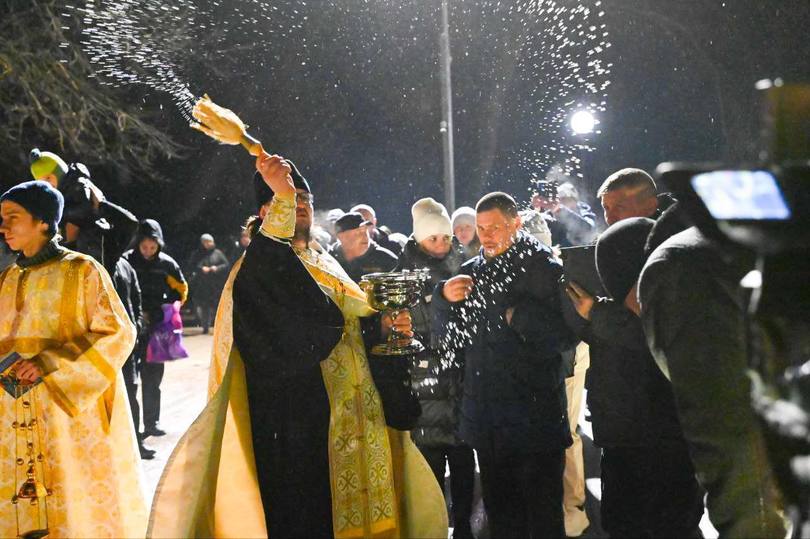 После завершения литургии был проведен чин освящения воды — один из главных обрядов праздника Крещения. Верующие запаслись святой водой, которая, согласно церковному преданию, обладает целительными свойствами.