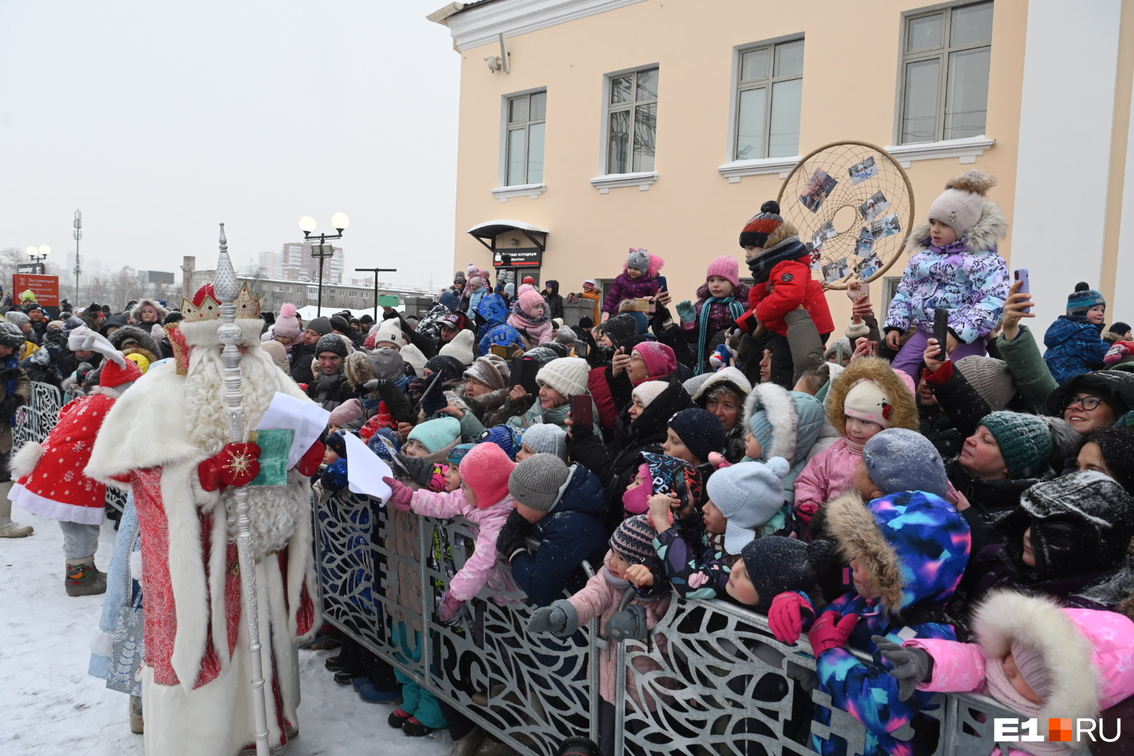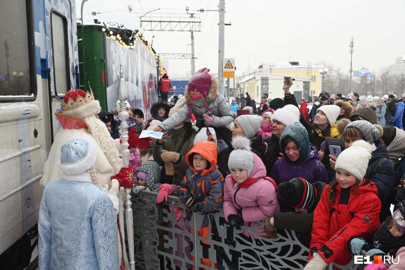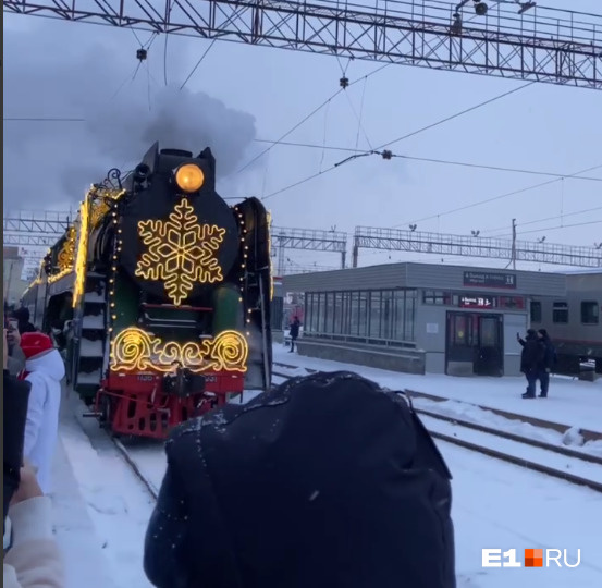 Сотни екатеринбуржцев с маленькими детьми собрались на перроне ж/д вокзала сегодня утром, чтобы встретить сказочный поезд деда Мороза. Его прибытие вызвало настоящий ажиотаж. Посмотрите, как это было (можно даже немножко позавидовать).