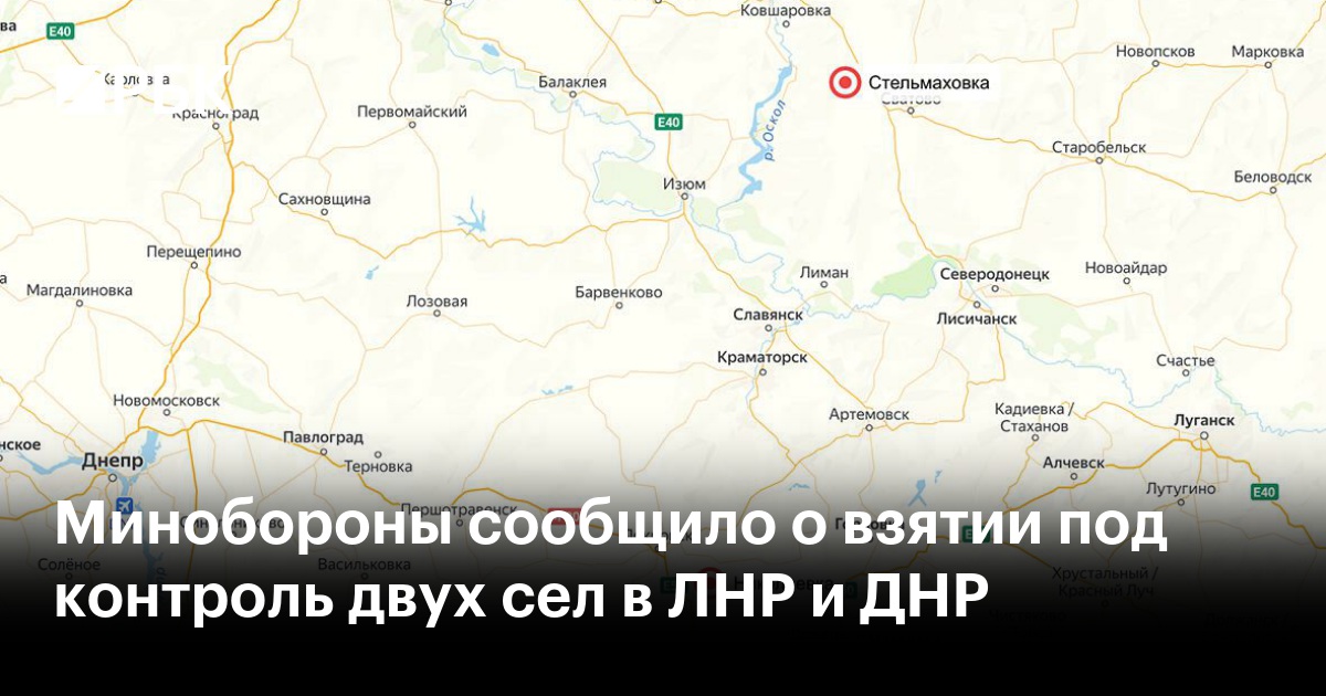 Два населенных пункта — Николаевка в ДНР и Стельмаховка в ЛНР, взяты под контроль российскими войсками. Об этом сообщило Минобороны.