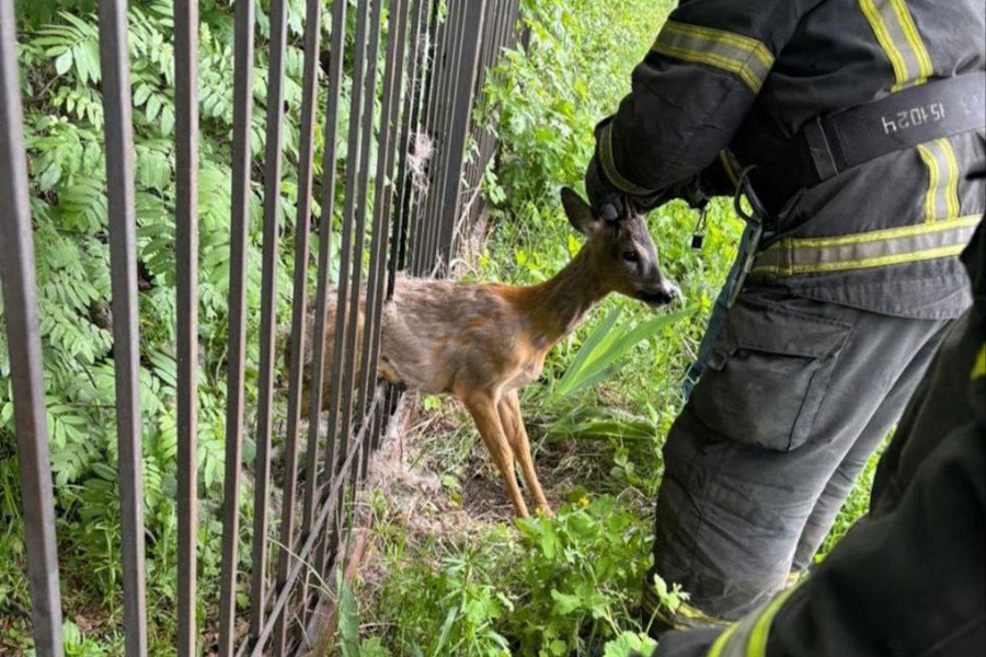 Сотрудники тульского управления МЧС России спасли малыша косули, который застрял в заборе гимназии №20 в Донском.