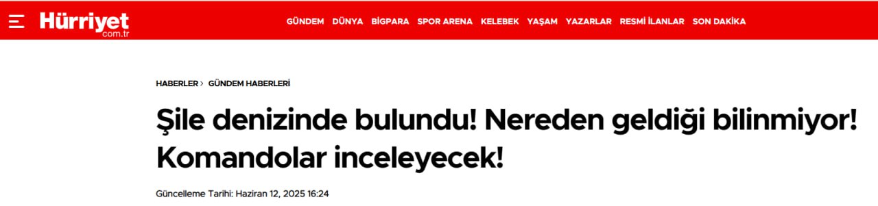 ΠΠ° ΠΏΠ»ΡΠΆΠ΅ Π£Π·ΡΠ½ΠΊΡΠΌ Π² Π¨ΠΈΠ»Π΅ (Π’ΡΡΡΠΈΡ) ΠΌΠΎΡΠ΅ Π²ΡΠ½Π΅ΡΠ»ΠΎ Π½Π° Π±Π΅ΡΠ΅Π³ Π½Π΅ΠΈΠ·Π²Π΅ΡΡΠ½ΡΠΉ ΠΎΠ±ΡΠ΅ΠΊΡ, Π²Π½Π΅ΡΠ½Π΅ ΡΡ ΠΎΠΆΠΈΠΉ Ρ ΡΠΊΡΠ°ΠΈΠ½ΡΠΊΠΈΠΌ Π±Π΅ΡΠΏΠΈΠ»ΠΎΡΠ½ΠΈΠΊΠΎΠΌ-ΠΊΠ°ΠΌΠΈΠΊΠ°Π΄Π·Π΅. ΠΠΎΠ΄ ΠΊΠΎΡΠΏΡΡΠΎΠΌ ΠΎΠ±Π½Π°ΡΡΠΆΠ΅Π½ΠΎ ΡΡΡΡΠΎΠΉΡΡΠ²ΠΎ, Π½Π°ΠΏΠΎΠΌΠΈΠ½Π°ΡΡΠ΅Π΅ Π²Π·ΡΡΠ²ΡΠ°ΡΠΊΡ, β ΡΠΎΠΎΠ±ΡΠ°Π΅Ρ Π³Π°Π·Π΅ΡΠ° HΓΌrriyet.