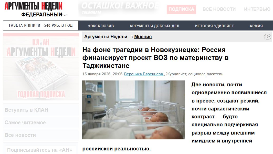 ❗️🇷🇺🇹🇯 Деньги на роддомы — в Таджикистан, смерти — в Новокузнецке