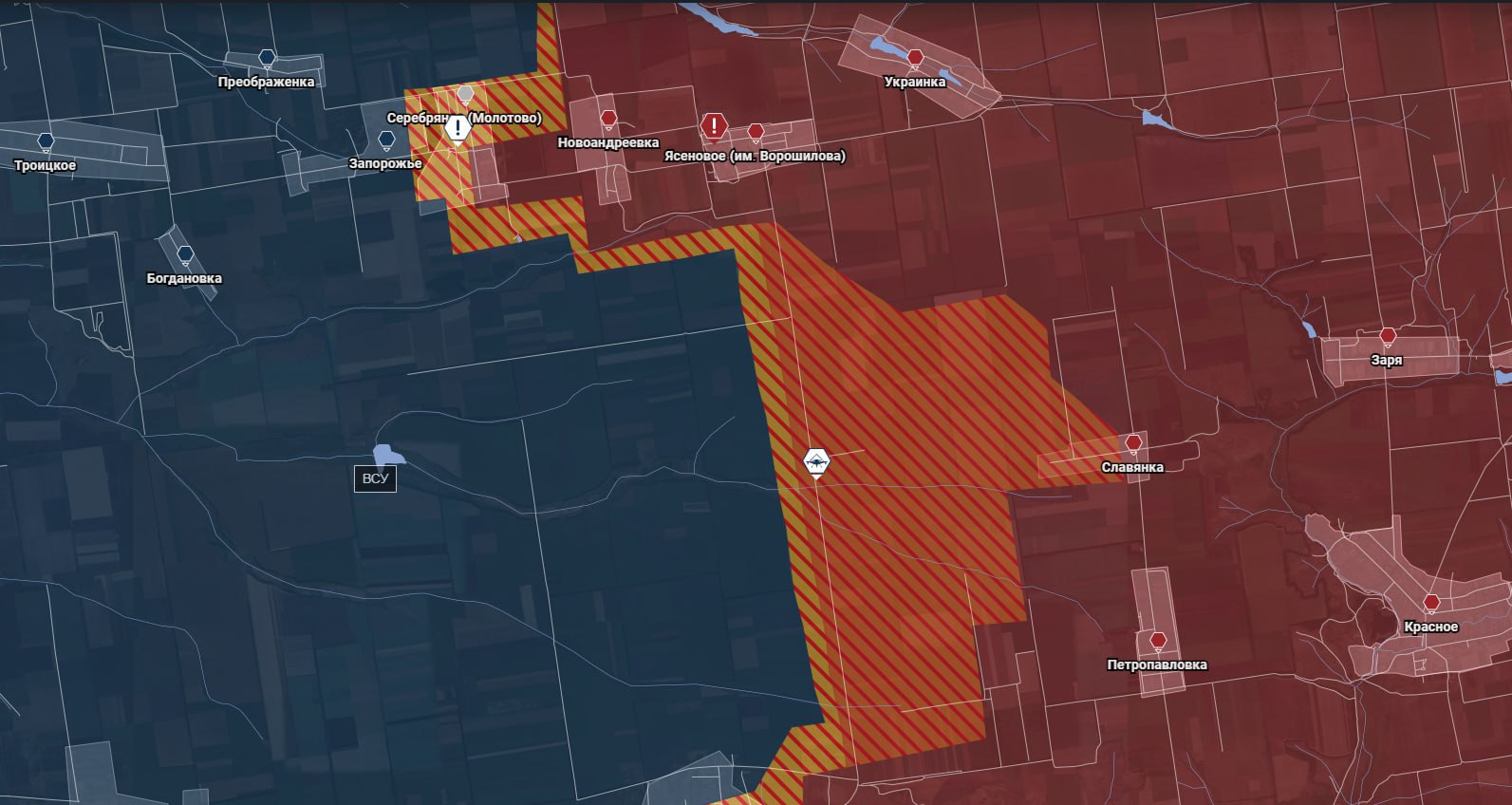 На Новопавловском направлении идут ожесточённые бои в районе Серебряного (Срибного), где противник стремится не допустить выхода ВС РФ к Запорожью.