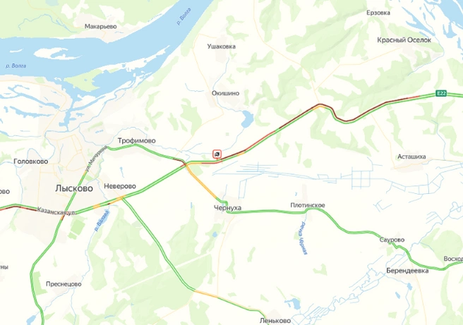 Движение по трассе М-7 в Лысковском районе затруднено из-за крупной аварии. На участке возле деревни Лужки столкнулись два грузовых автомобиля. В сторону Нижнего Новгорода пробка растянулась на 10 километров, свидетельствуют данные онлайн-карт.