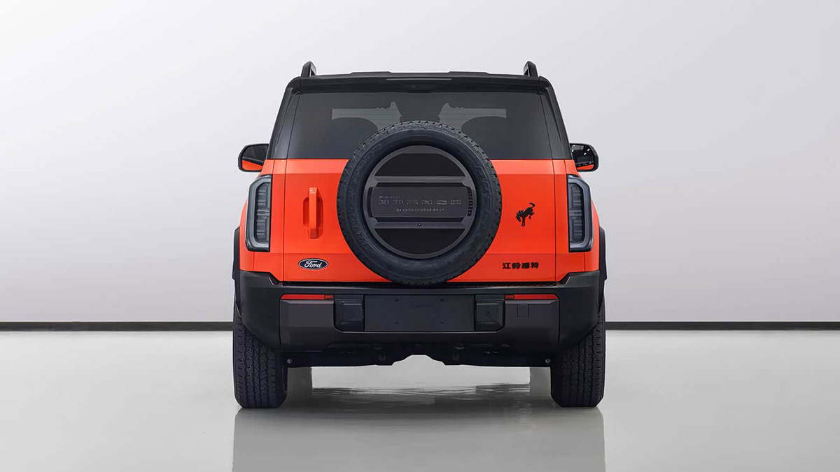 Этот вариант предназначен исключительно для Поднебесной, на экспорт такая модель не поедет. По дизайну экстерьера новый китайский Ford Bronco ближе к американскому Bronco Sport, у него традиционный пятидверный «оквадраченный» кузов, полноценные рейлинги на крыше, обычные наружные зеркала с чёрными корпусами, а головная оптика визуально составляет единый элемент с заглушкой с названием модели.