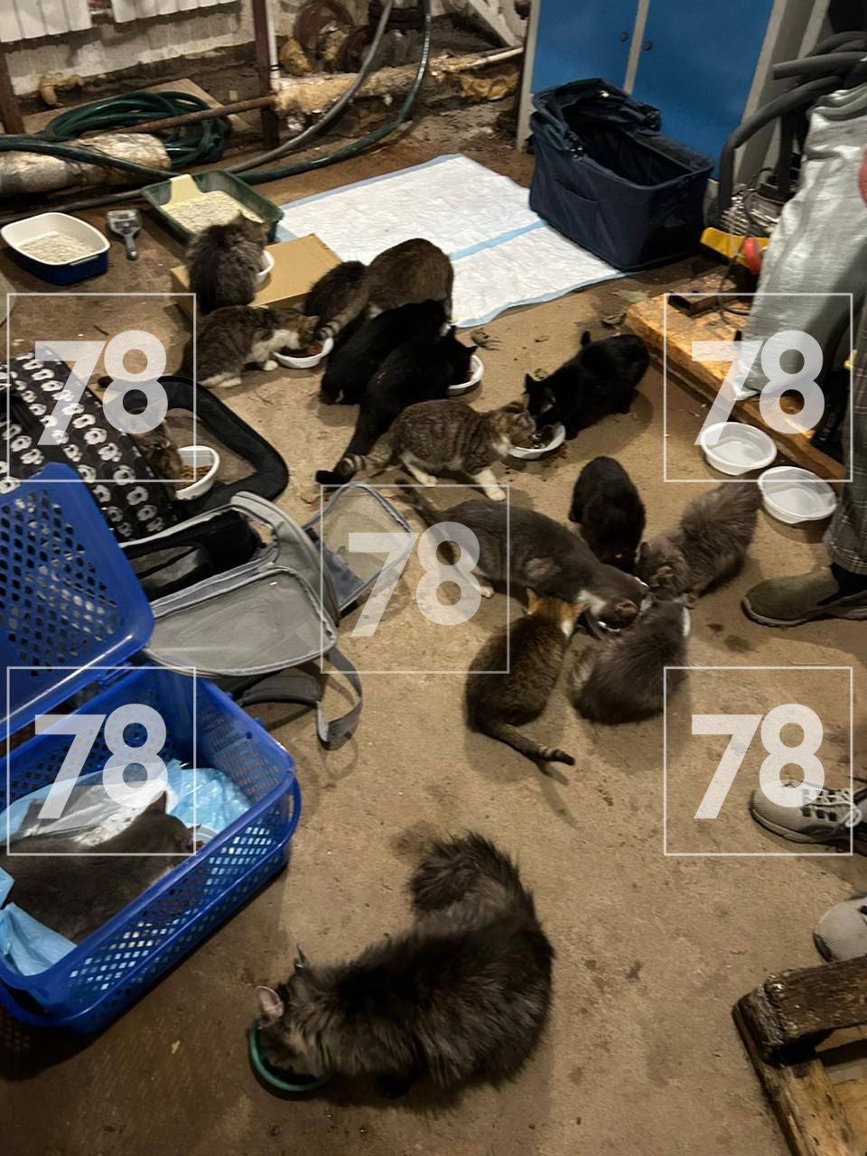 Всего удалось забрать около 25 особей. Большинству требуется помощь ветеринара, в том числе и беременной кошке. Откуда взялись коты в таком количестве – загадка, возможно, от них избавился какой-то приют.