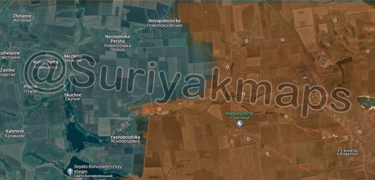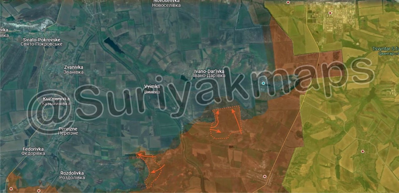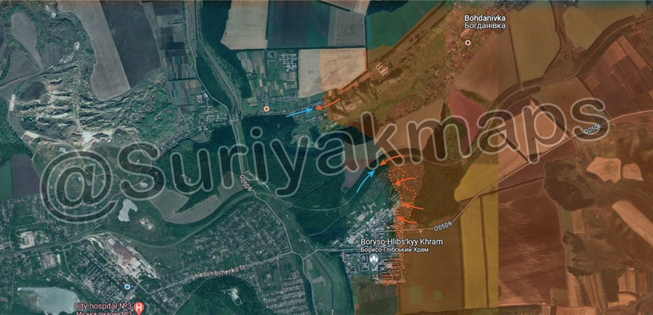 2. Продолжается наступление на Часов Яр, были взяты новые территории на северо-востоке микрорайона Канал. Кроме того, российские войска предпринимают попытки продвинуться в н.п. Калиново.
