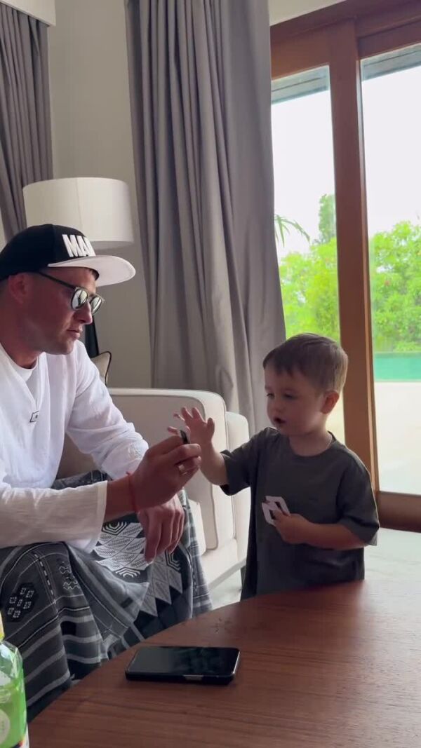Так, Брутян опубликовала видео, на котором Микаэль изучает карточки с буквами и произносит слова, ему во всем помогают мама и папа. «С — слон, ж — жук, я… Г — гусь, улитка», — говорит мальчик. «Нам два года — уже учим алфавит», — похвасталась жена актера.