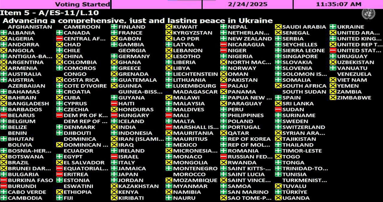 Против голосовали: Россия, Белоруссия, Венгрия, США, Израиль.
