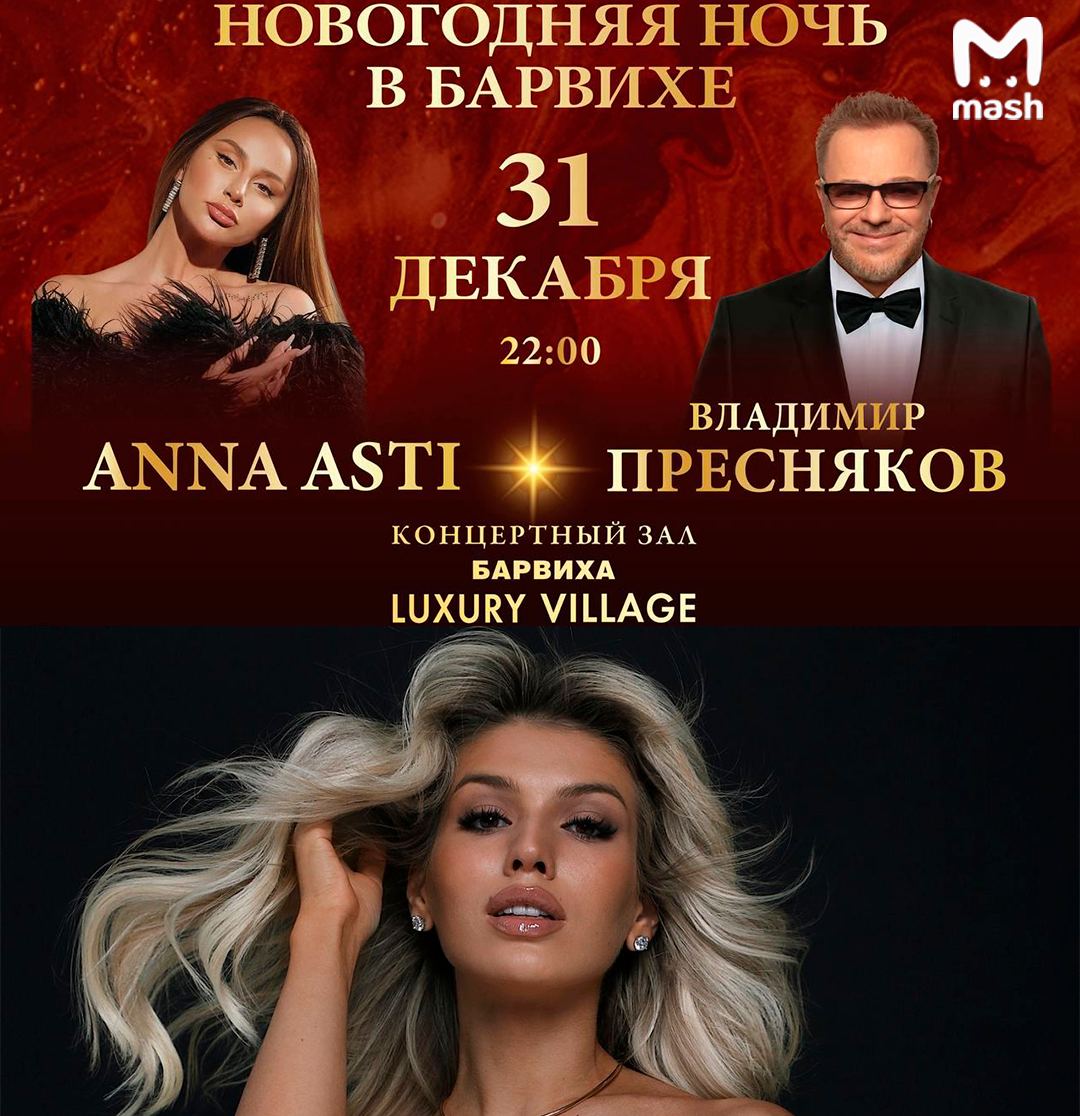 Новогодний концерт Анны Асти отменили в "Барвихе Luxury Village". Причина всё та же — "голая" вечеринка Насти Ивлеевой в московском клубе Mutabor. По нашей информации, из-за этого певица потеряла ещё 6,5 миллиона рублей.