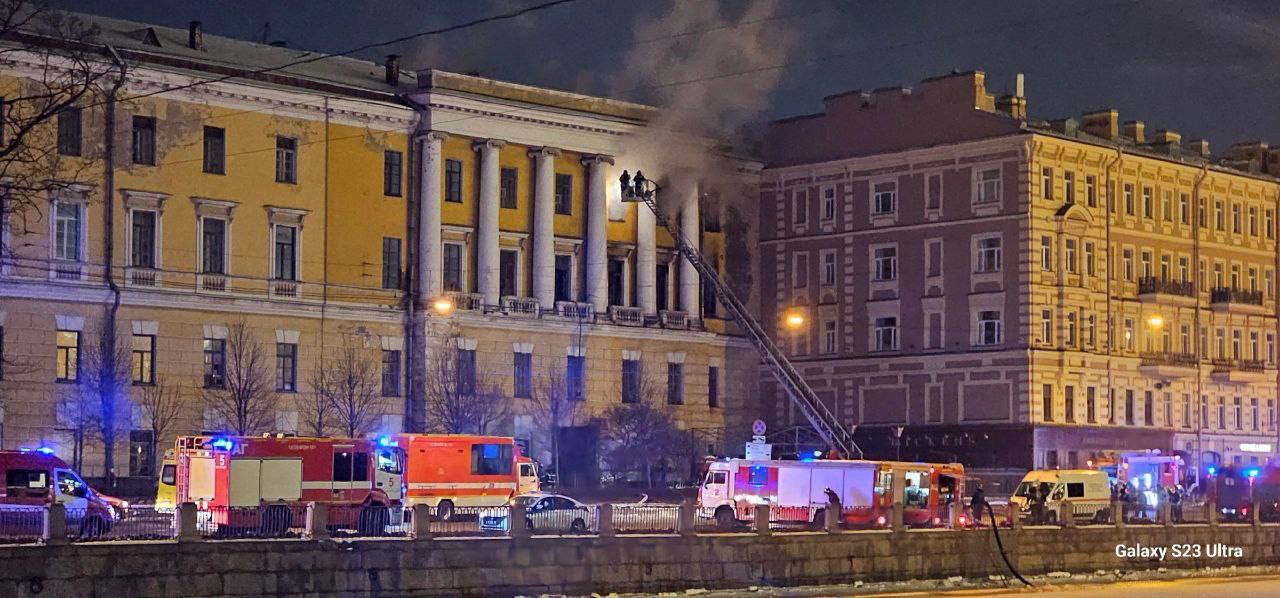 В Питере горит здание знаменитой Обуховской больницы. На месте происшествия работает большое количество пожарных расчетов. Проезд по набережной перекрыт. Что стало причиной пожара пока неизвестно.