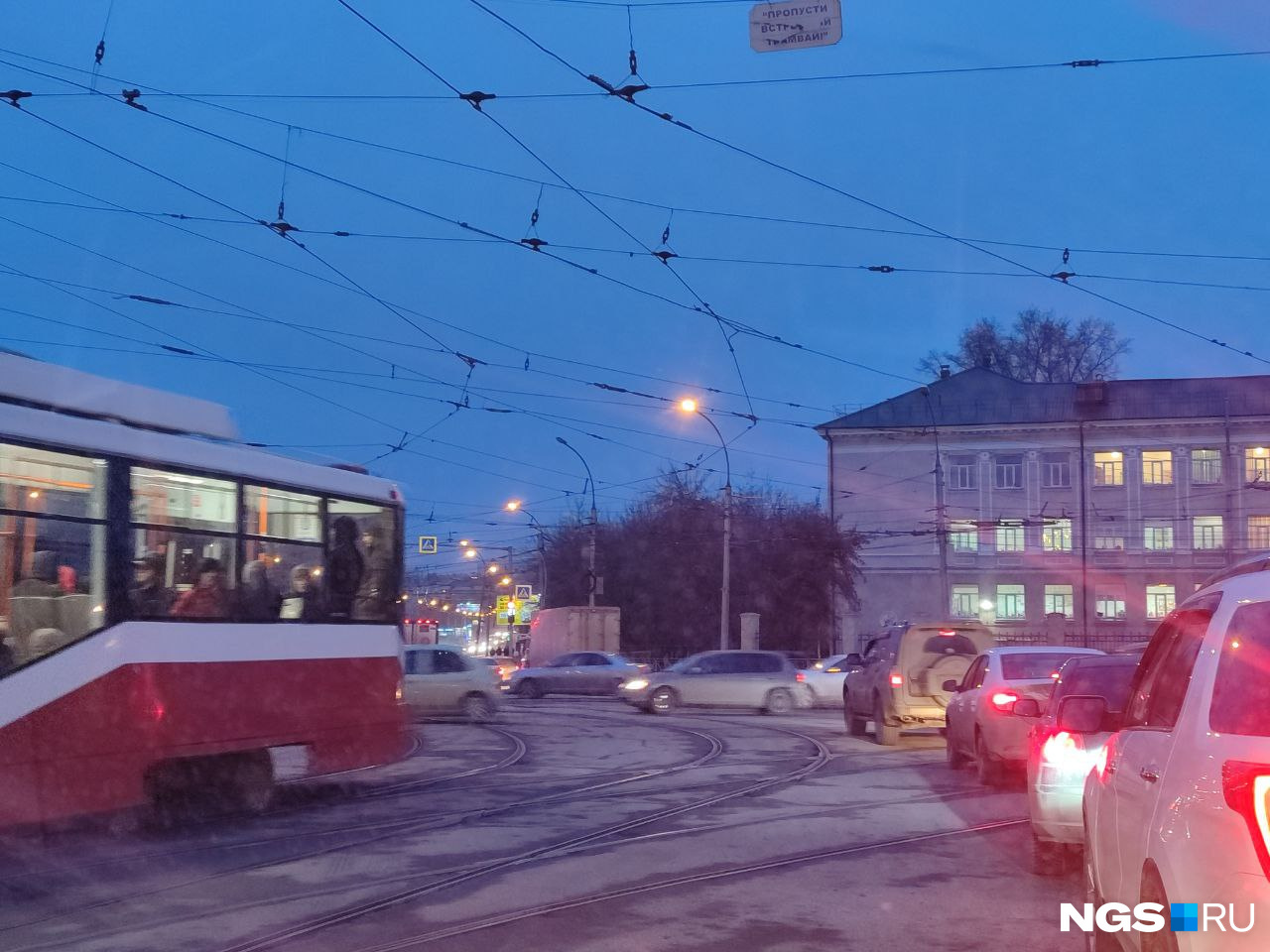 Окольными путями примерно через 7 минут наша экспериментальная команда наконец-то оказалась на площади Сибиряков-Гвардейцев. И уж тут-то всё смешалось, как в доме Облонских: по соседству друг с другом едут и многочисленные машины, и грузовики, и электротранспорт. Трамвайные пути здесь буквально сливаются с дорогой — они находятся на одном уровне, и определить, что рельсы — это рельсы можно только по их отличительному металлическому блеску. Поэтому один неверный шаг — и автомобиль прямо на ходу рискует съехать с полосы там, где этого делать не стоит. Мария признается, что боится ездить одна по площади.