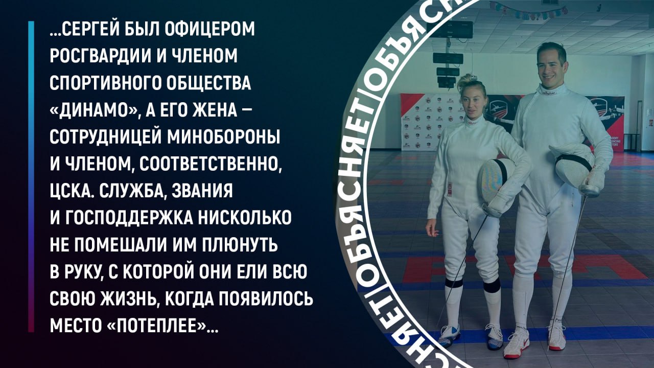 Речь не просто о спортсменах из РФ — Сергей был офицером Росгвардии и членом спортивного общества «Динамо», а его жена — сотрудницей Минобороны и членом ЦСКА. Служба, звания и господдержка нисколько не помешали им плюнуть в руку, с которой они ели всю свою жизнь, когда появилось место «потеплее». Как бы ни было обидно, очевидно, что столь лестным для нас вражеским ожиданиям российский спорт сегодня не соответствует.