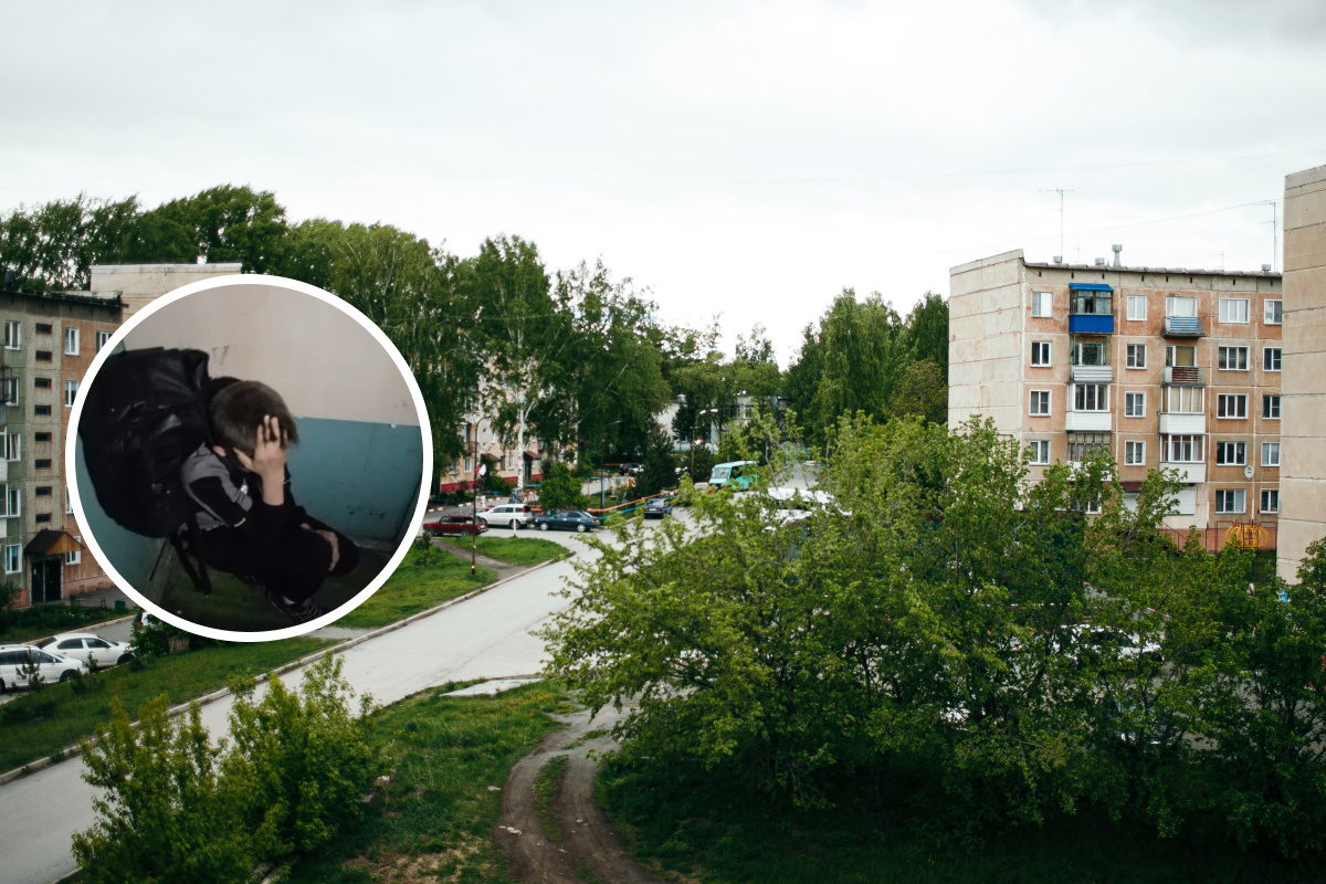 В ролике, который имеется в распоряжении редакции НГС, подросток с рюкзаком сидит на корточках в углу подъезда и просит его не бить.