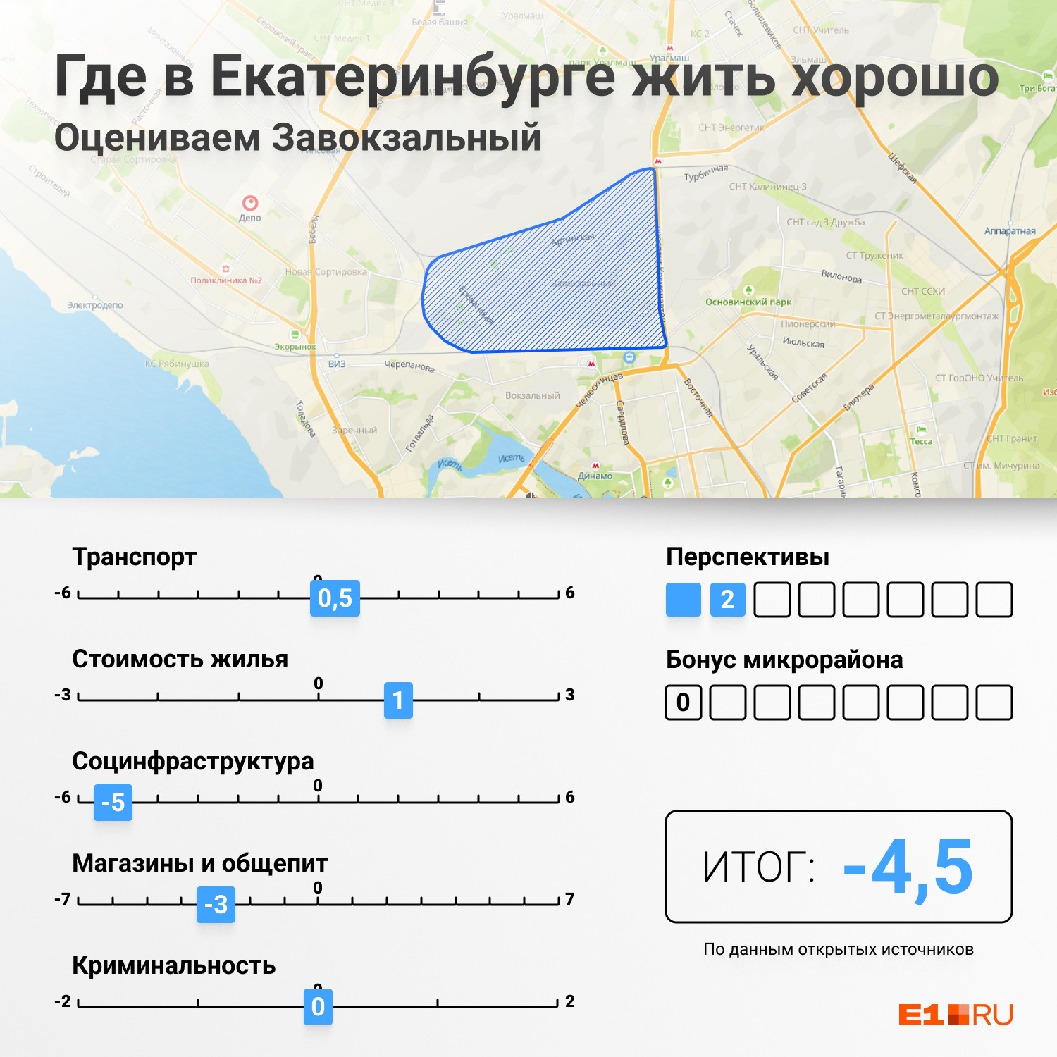 На инфографике выше — общий итог оценки Завокзального. Далее подробно объясним, как мы считали.