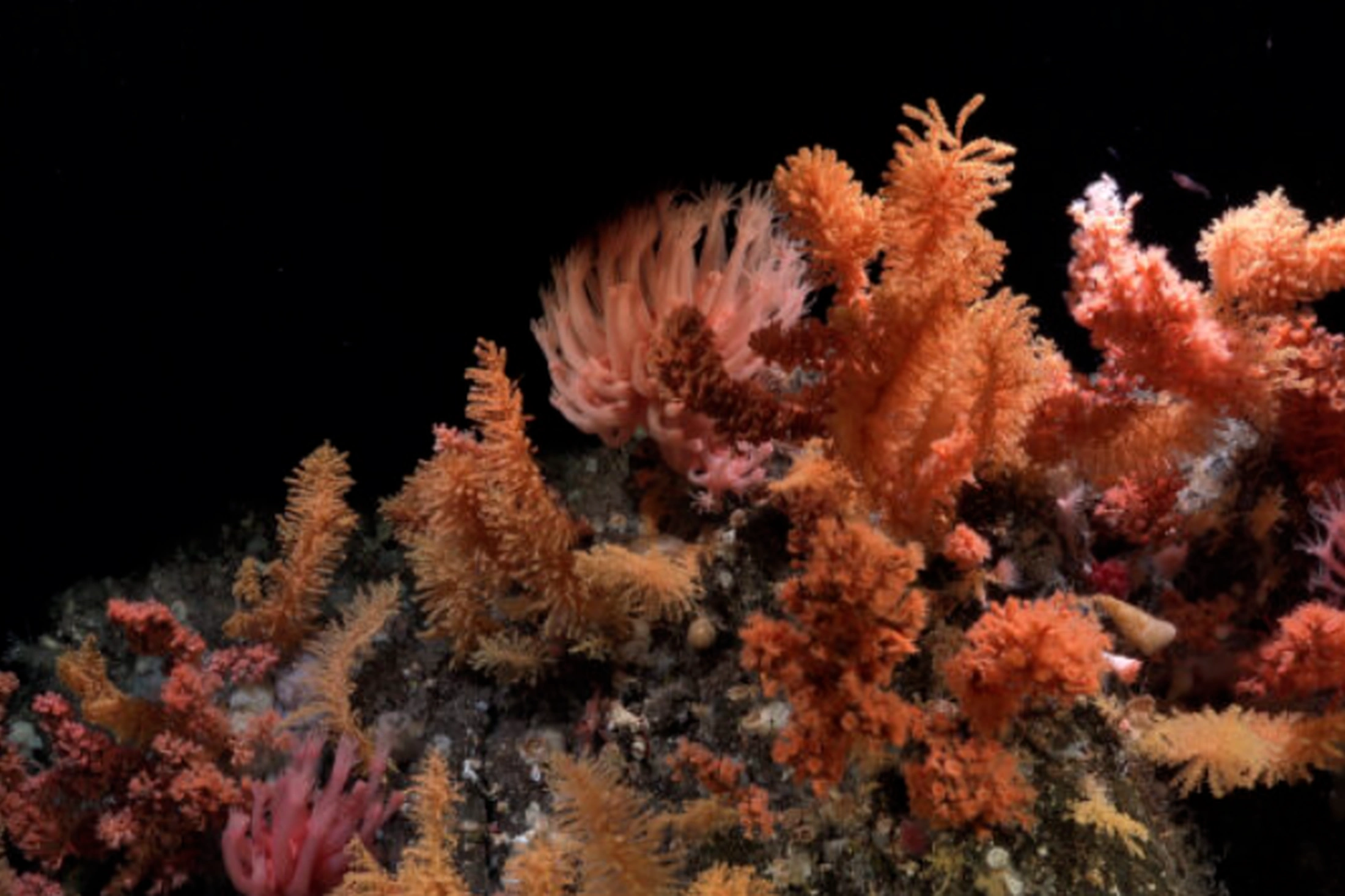 Например, ярко-красный коралловый сад, обнаруженный на подводной горе Горбатая, рядом с наиболее мелководными гидротермальными источниками региона на глубине около 700 метров.