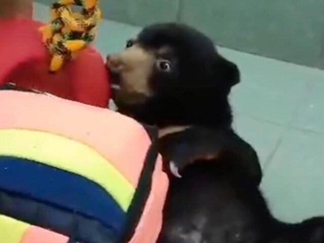 По его словам, Лучик с интересом обнюхивал все предметы в игровой, где ранее была Звездочка. Зоологи играли с медвежонком, развлекали его и предлагали ему игрушки.