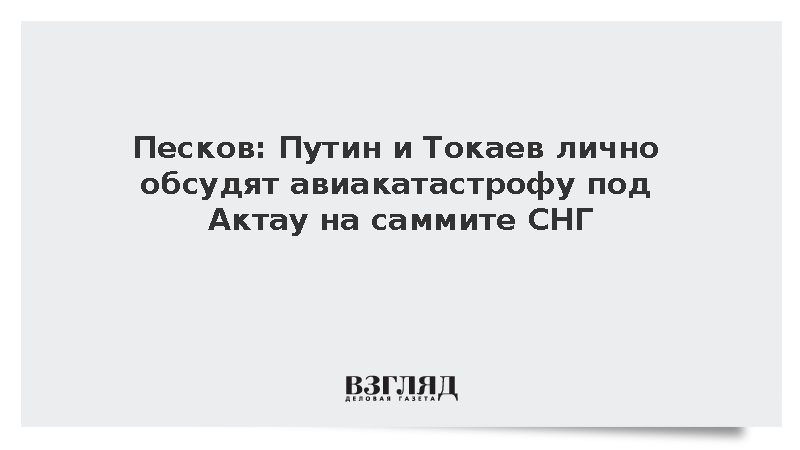 Президент России Владимир Путин не звонил лидеру Казахстана Касым-Жомарту Токаеву по поводу авиакатастрофы под Актау, так как сегодня они встретятся лично на полях неформального саммита СНГ, сообщил пресс-секретарь российского лидера Дмитрий Песков.