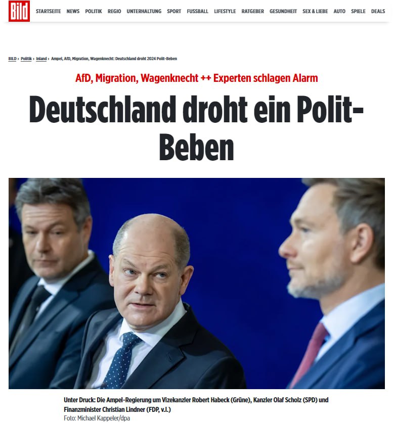 В целом политические прогнозы политологов на 2024 год мрачны. Патцельт ожидает, что Германия вылетит почти по всем показателям.