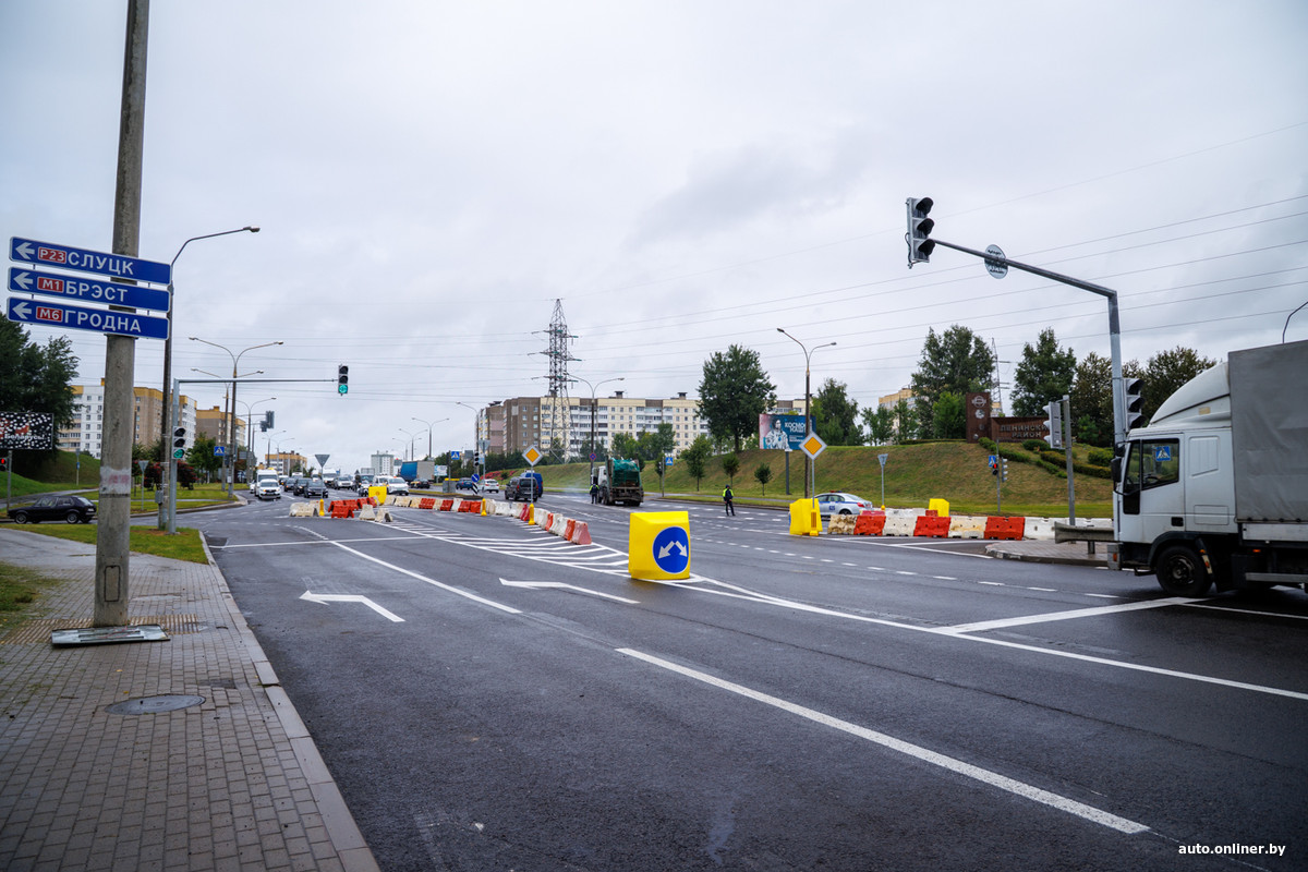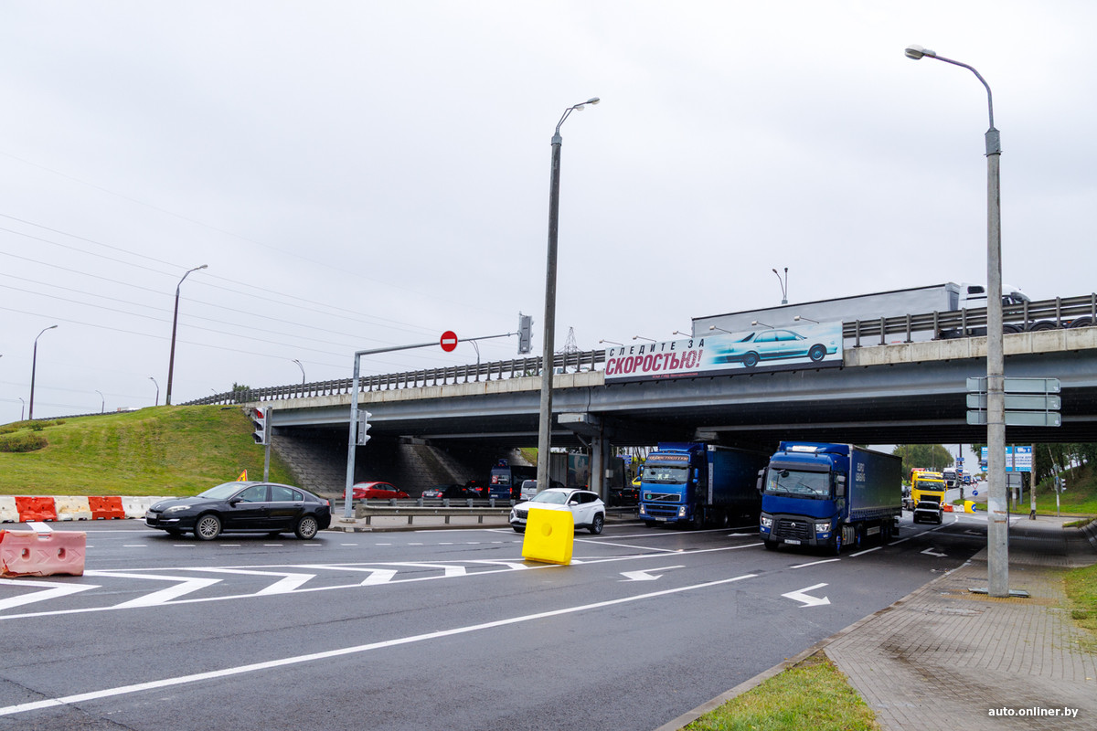 В выходные стало известно о том, что на пересечении МКАД, Игуменского тракта и улицы Бабушкина изменилась схема дорожного движения: здесь реализована дивергентная ромбовидная развязка, также известная как расходящаяся алмазная или двойная перекрестная алмазная развязка. Это первый подобный проект в Минске. Пока водители столкнулись с побочным эффектом.