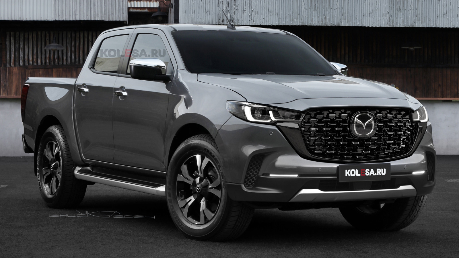 На этом тизере изображён лишь сильно затемнённый вид спереди, однако уже можно рассмотреть новые фары с графикой светодиодных огней, выполненных в стиле обновлённого кроссовера Mazda CX-5. Также виден существенно увеличенный логотип, вследствие чего можно предположить, что и решётка станет более крупной. Наверняка изменится и дизайн переднего бампера — мы изобразили один из возможных вариантов. Что же касается задней части, то в этой области производители пикапов обычно очень консервативны, и едва ли можно ожидать существенных изменений. Но мы всё же представили вариант с обновлённой графикой светодиодных габаритных огней, сделанной также в стиле современных кроссоверов компании.