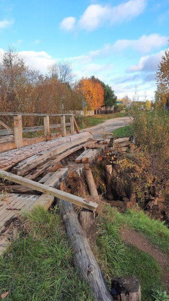 В комментариях под благостным видео утренней пробежки губернатора Филимонова под лучами осеннего солнца жительница Череповецкого района Ольга Шепелева рассказала, что в деревне Пленишник,Уломского поселения рухнул мост.