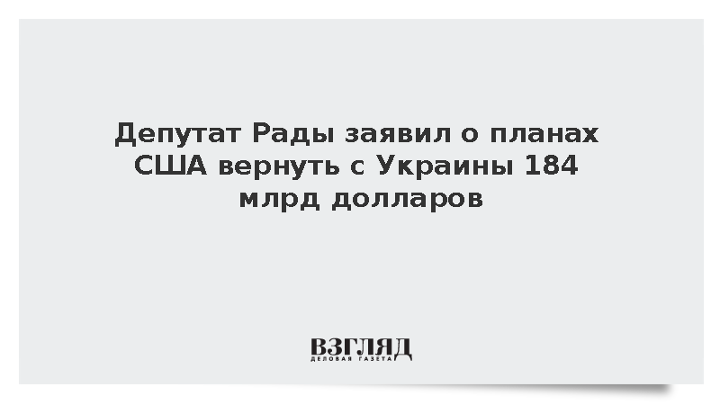 Украинский депутат Александр Дубинский заявил, что США планируют вернуть 184 млрд долларов с Украины за предоставленную помощь, используя доходы от ресурсов страны.