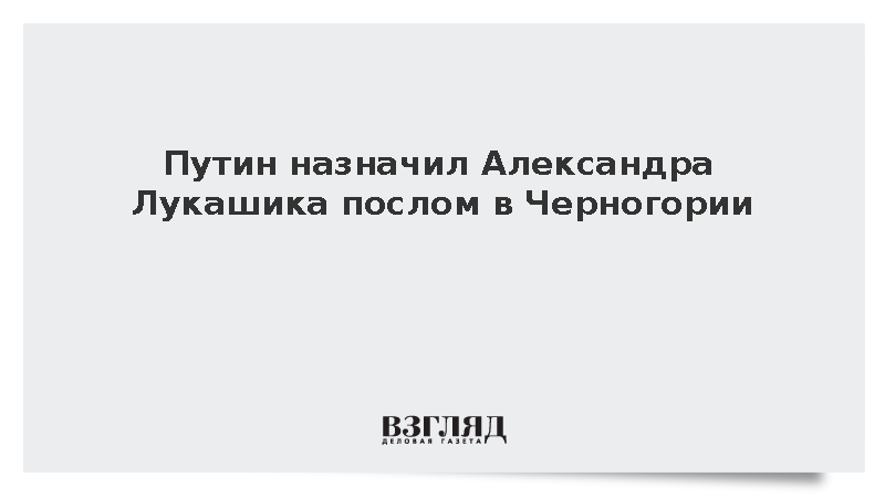 Президент России Владимир Путин подписал указ о назначении Александра Лукашика на пост чрезвычайного и полномочного посла Российской Федерации в Черногории.