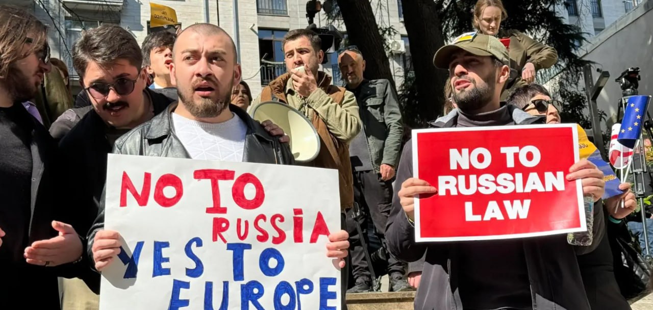 Грузин с украинским флагом на кепке и английским плакатом "нет российским законам" на фото очень о многом говорит. США, хоть бы не палились так сильно, для приличия.