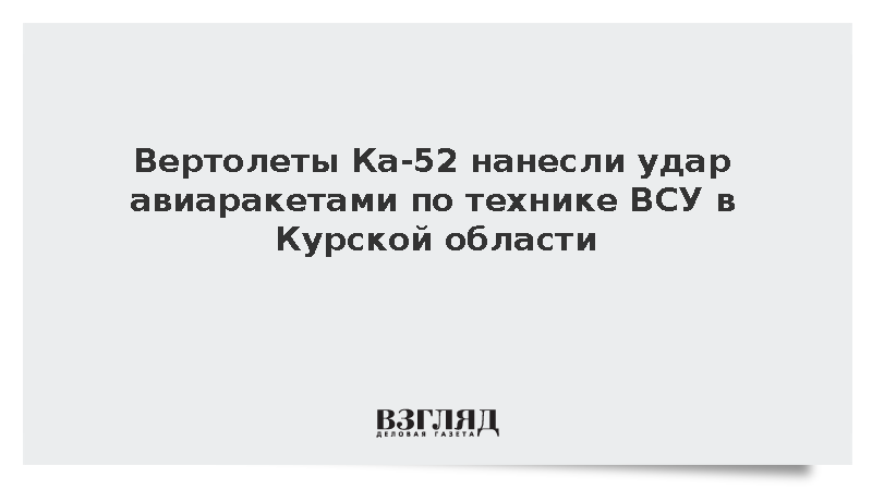 Экипажи Ка-52 нанесли удар авиационными ракетами по бронированной военной технике ВСУ в приграничном районе Курской области, сообщило Министерство обороны России.