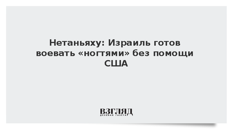 Премьер-министр Израиля Биньямин Нетаньяху заявил о готовности страны продолжать военные действия в одиночку, даже если США прекратят оказывать военную помощь.