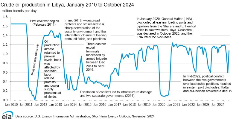 Гражданская война уполовинила источник богатств Ливии — добычу нефти, а основная маржа, которую до этого диктатор Каддафи размазывал в виде нефтяной ренты по населению, теперь преимущественно оседает в карманах лидеров бандформирований, разрывающих страну на части. ВВП ППС на душу населения в Ливии в прошлом году составил 17,7 тыс. долларов на человека. С учетом инфляции — более чем двукратное падение с 2010 года.