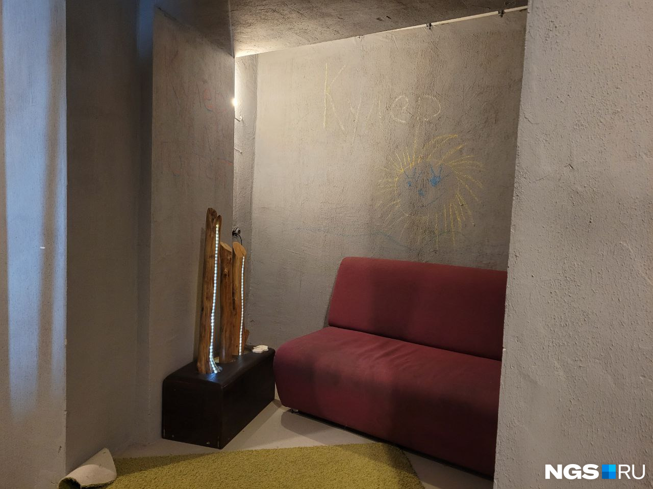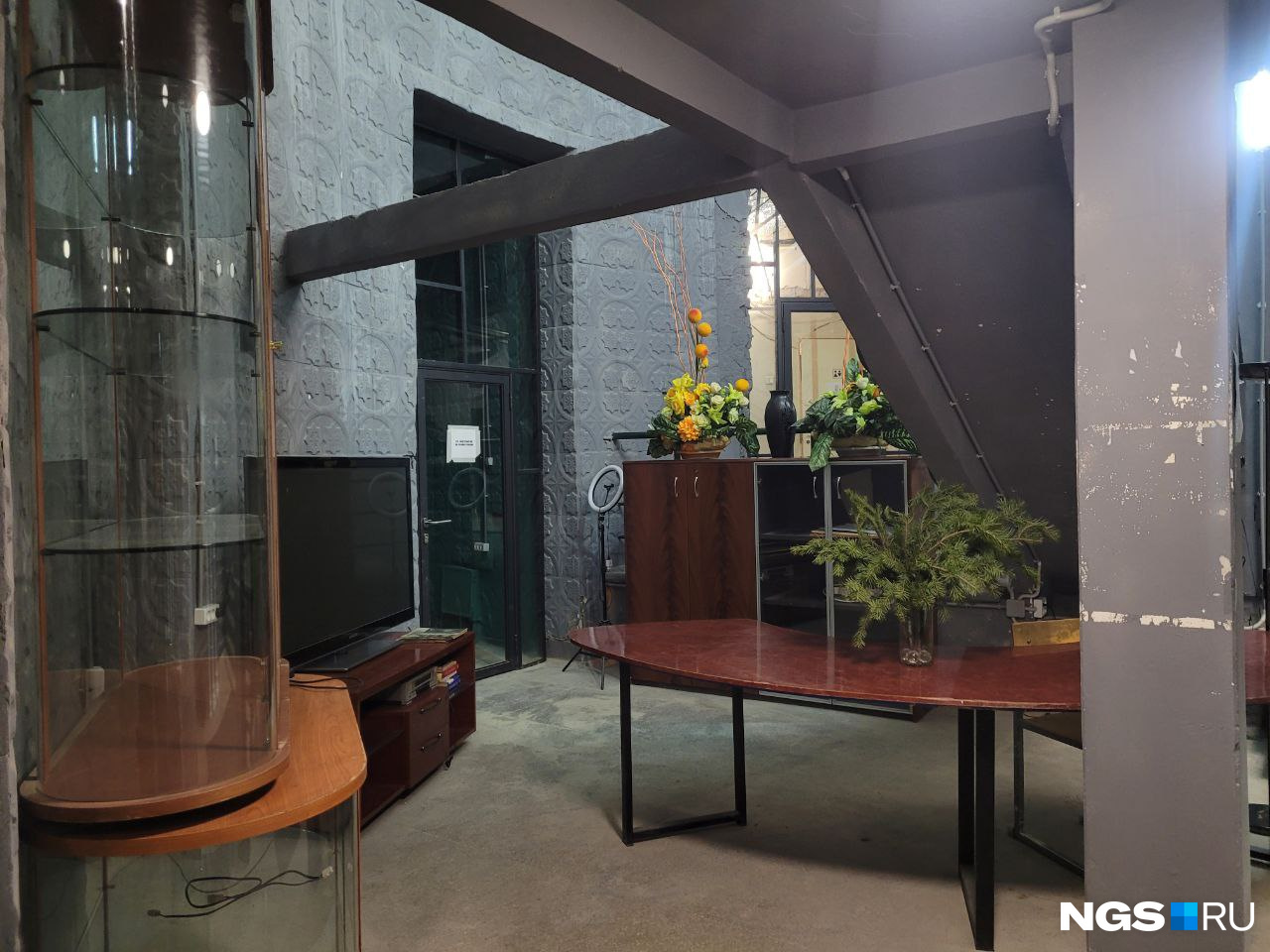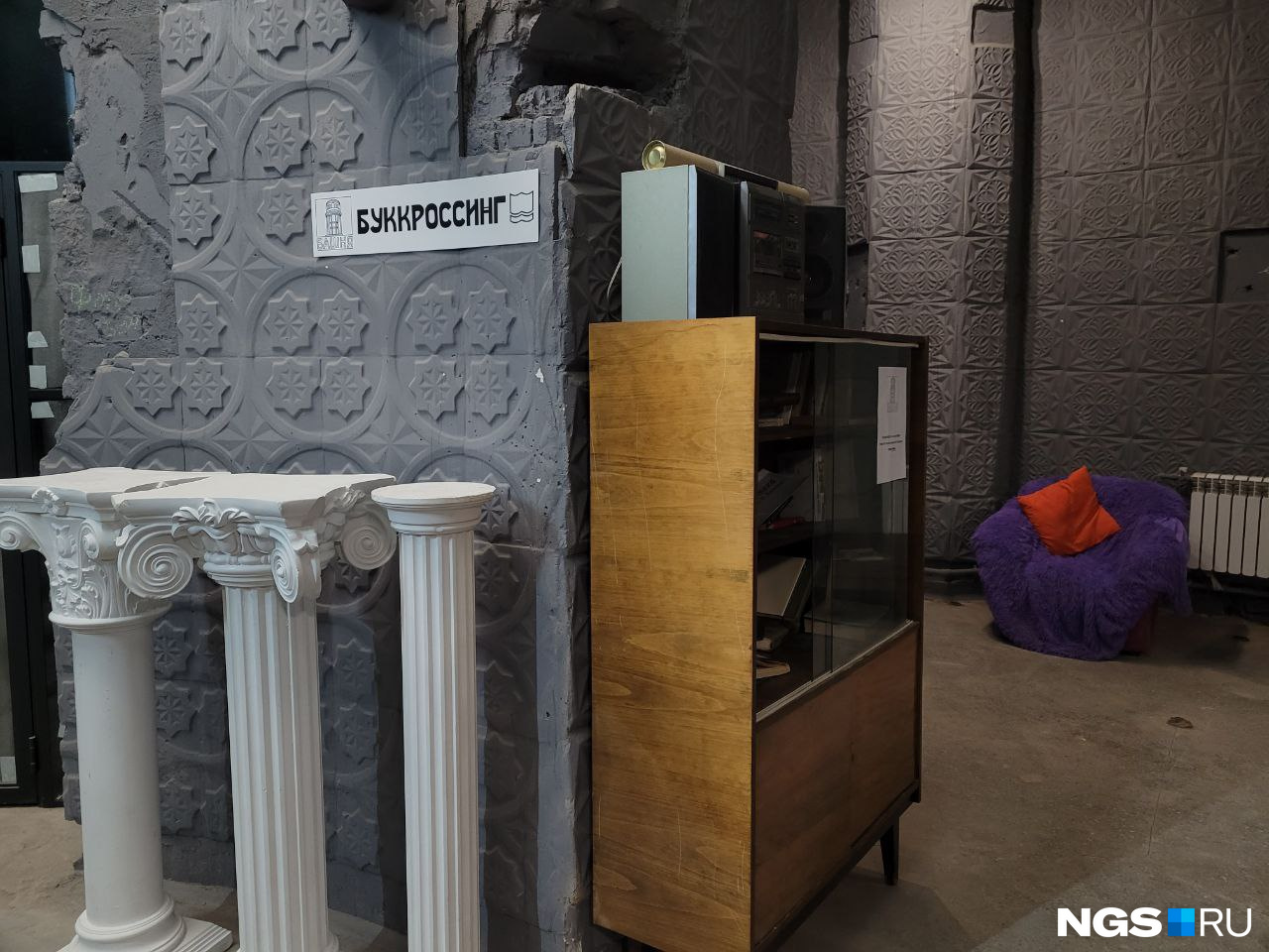 Здание водонапорной Башни еще не выглядит полностью обжитым. На первом этаже поставлены полки для буккроссинга, оформлена входная зона со столами в стиле СССР. В углу стоят лестницы, по которым можно понять, что ремонт все еще продолжается. Под потолком висит огромная шикарная люстра — ее купил один из нынешних владельцев Башни.