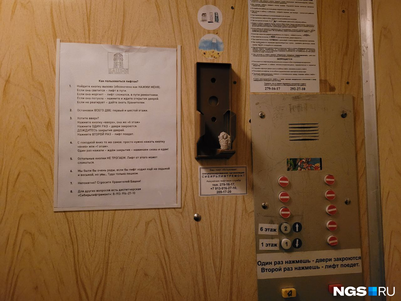 Лифт в здании старый и способ работы у него странный — чтобы поехать, нужно нажать два раза. А иначе двери закроются и вы останетесь в темноте. К счастью, на крики быстро прибегают «хранители», открывают двери и показывают на надпись с инструкцией.