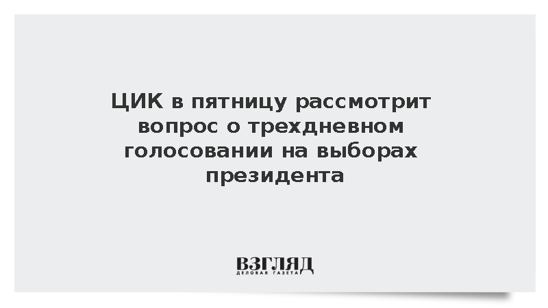 ЦИК в пятницу рассмотрит вопрос о трехдневном голосовании на выборах президента