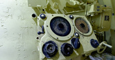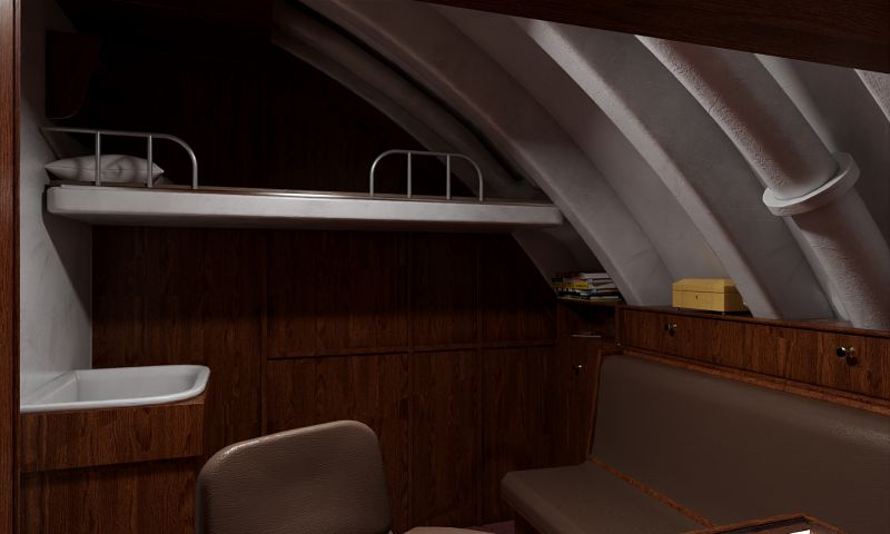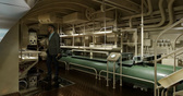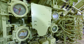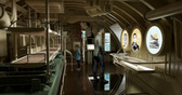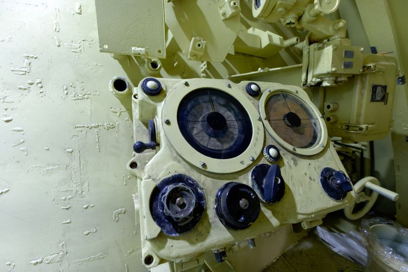 Нам показали, как восстанавливают внутренние пространства и монтируют элементы экспозиции. Несмотря на внушительные наружные габариты «К-3», отсеки, по которым мы прошли, достаточно тесные — трудно даже представить, как там работал и жил экипаж — 104 человека. Например, камбуз по площади показался нам сравнимым с не слишком большой кухней в обычной квартире.