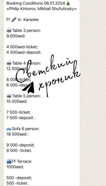 Стало известно, что на шоу Филиппа Киркорова в Дубае придется потратить немало денег. Столик на трех персон обойдется соискателям в 223 тысячи, а компании из шести человек придется заплатить 450 тысяч рублей. Даже самый скромный билет на террасу стоит 25 тысяч рублей. Конечно, такие цены неудивительны, учитывая, что Филипп Киркоров – одна из самых ярких звезд шоу-бизнеса, а его шоу зрелищные и наполнены феерией.