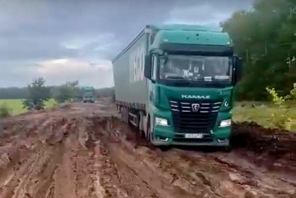 Даже фуры застревают: как водители пробираются через сельскую дорогу в Башкирии возле строящейся М-12