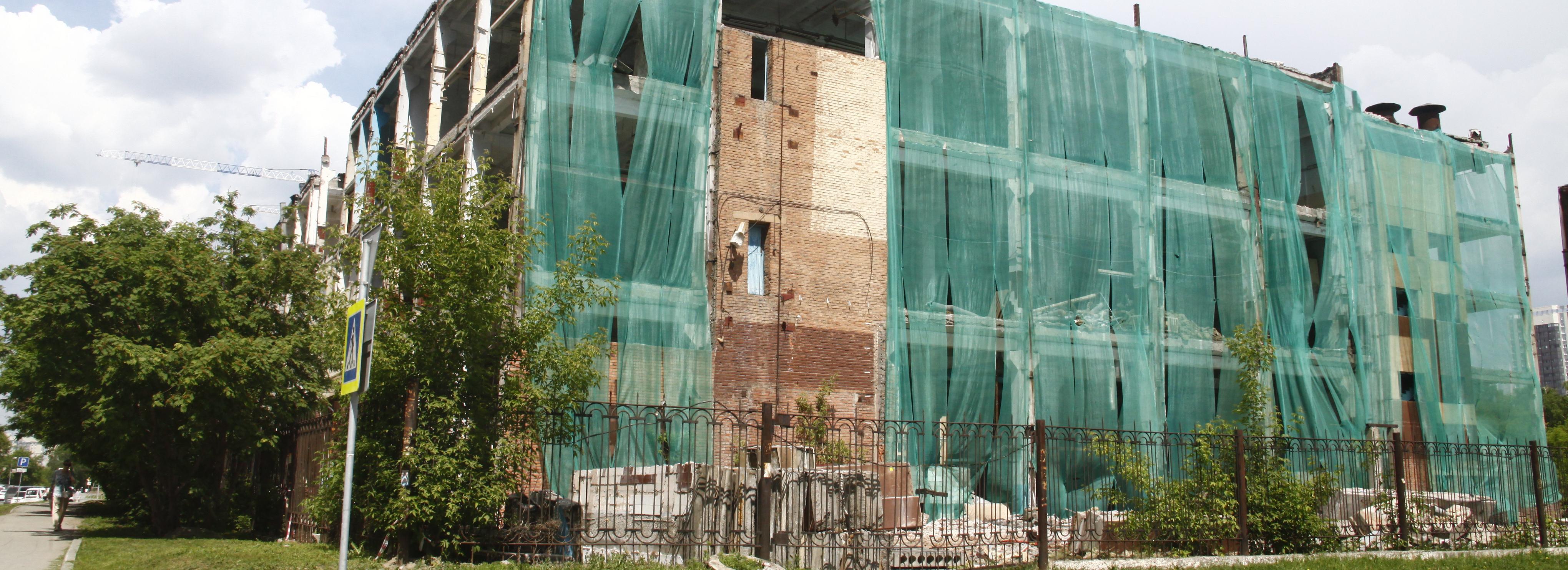 В центре Новосибирска завершается снос пятиэтажного корпуса жиркомбината. Пустовавшее несколько лет здание разбирают с помощью спецтехники с начала мая.