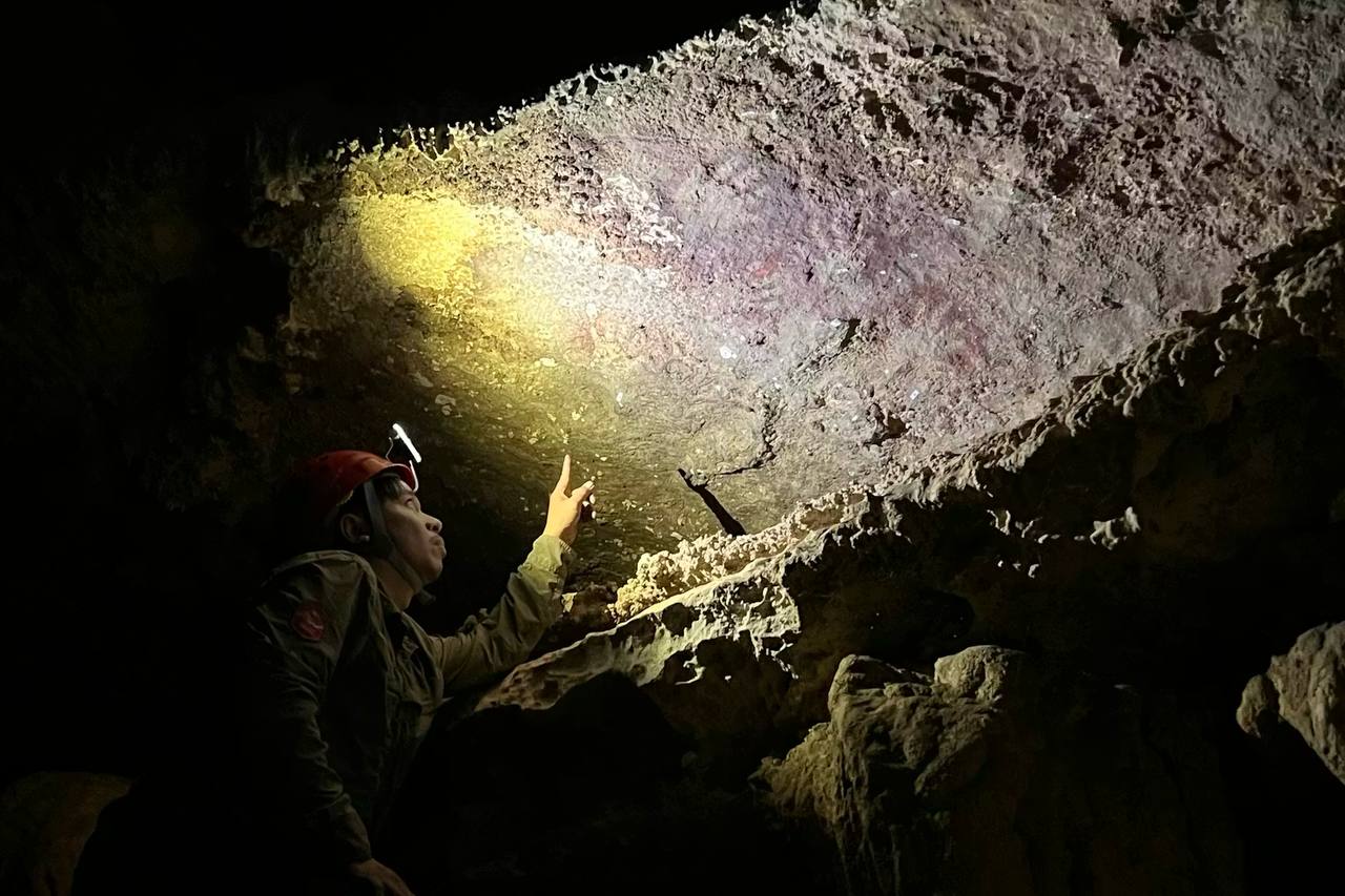 Обнаруженный в известняковых пещерах на острове Сулавеси красный отпечаток руки был создан не менее 67,8 тысячи лет назад.