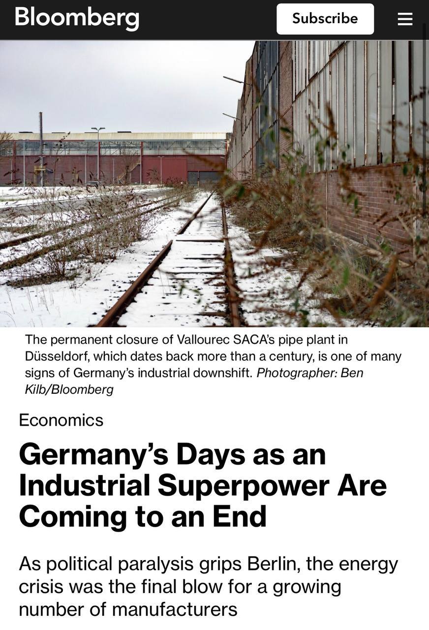 Β«ΠΠ΅ΡΠΌΠ°Π½ΠΈΡ Π½Π°Ρ ΠΎΠ΄ΠΈΡΡΡ Π½Π° Π³ΡΠ°Π½ΠΈ ΡΡΡΠ°ΡΡ ΡΡΠ°ΡΡΡΠ° ΠΏΡΠΎΠΌΡΡΠ»Π΅Π½Π½ΠΎΠΉ ΡΠ²Π΅ΡΡ Π΄Π΅ΡΠΆΠ°Π²Ρ ΠΈΠ·-Π·Π° ΡΡΠ΄Π° ΡΠ°ΠΊΡΠΎΡΠΎΠ², ΡΠ°ΠΊΠΈΡ ΠΊΠ°ΠΊ ΠΊΠΎΠ½ΠΊΡΡΠ΅Π½ΡΠΈΡ ΡΠΎ ΡΡΠΎΡΠΎΠ½Ρ Π‘Π¨Π, ΡΠΌΠ΅Π½ΡΡΠ΅Π½ΠΈΠ΅ ΠΈΠ½ΡΠ΅ΡΠ΅ΡΠ° ΡΠΎ ΡΡΠΎΡΠΎΠ½Ρ ΠΠΈΡΠ°Ρ ΠΊ Π½Π΅ΠΌΠ΅ΡΠΊΠΈΠΌ ΡΠΎΠ²Π°ΡΠ°ΠΌ ΠΈ ΡΠ½Π΅ΡΠ³Π΅ΡΠΈΡΠ΅ΡΠΊΠΈΠΉ ΠΊΡΠΈΠ·ΠΈΡ, Π²ΡΠ·Π²Π°Π½Π½ΡΠΉ ΠΏΡΠ΅ΠΊΡΠ°ΡΠ΅Π½ΠΈΠ΅ΠΌ ΠΏΠΎΡΡΠ°Π²ΠΎΠΊ ΡΠΎΡΡΠΈΠΉΡΠΊΠΎΠ³ΠΎ Π³Π°Π·Π°Β».