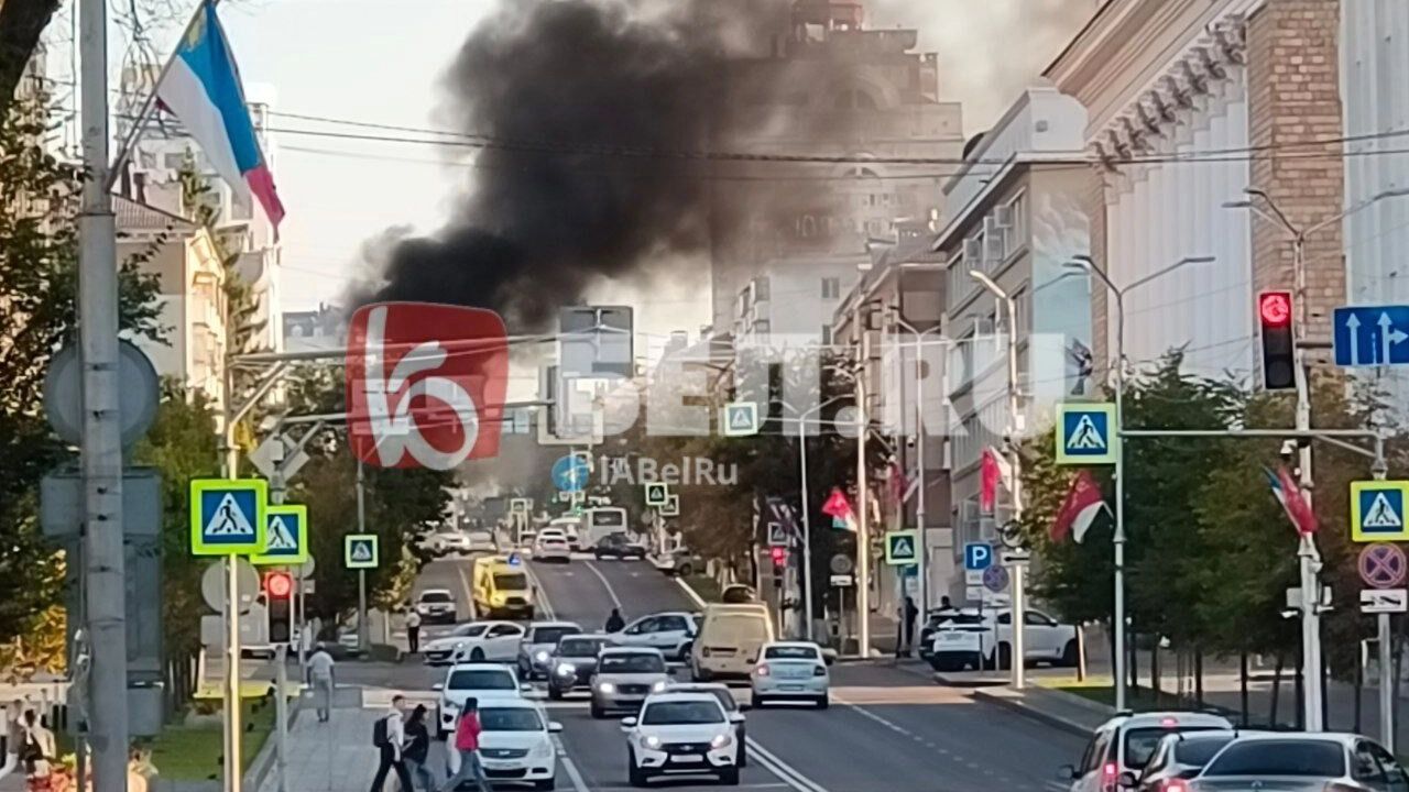 Кроме того, в районе 07:30 в центре Белгорода заметили густой чёрный дым — горел автомобиль. Движение на улице Попова пришлось перекрывать.