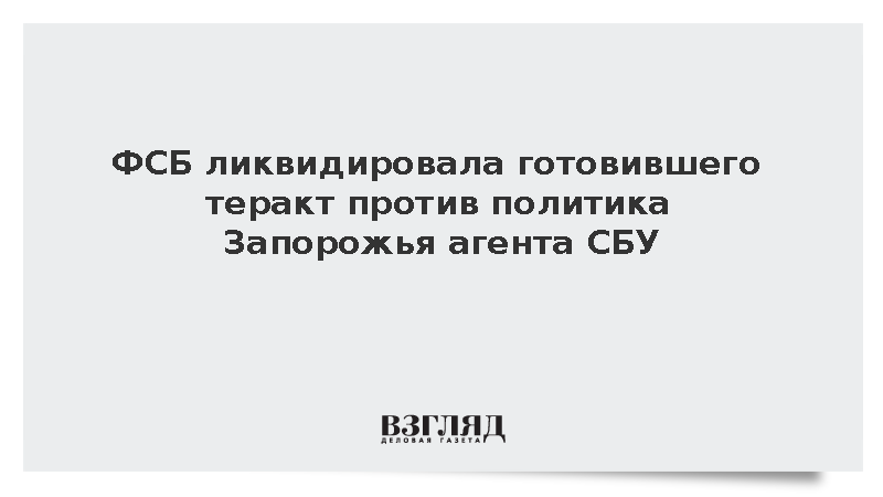 ФСБ России нейтрализовала готовившего перед выборами теракт против политика Запорожской области агента СБУ, сообщили в Центре общественных связей (ЦОС) ведомства.