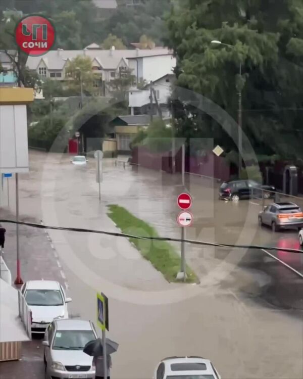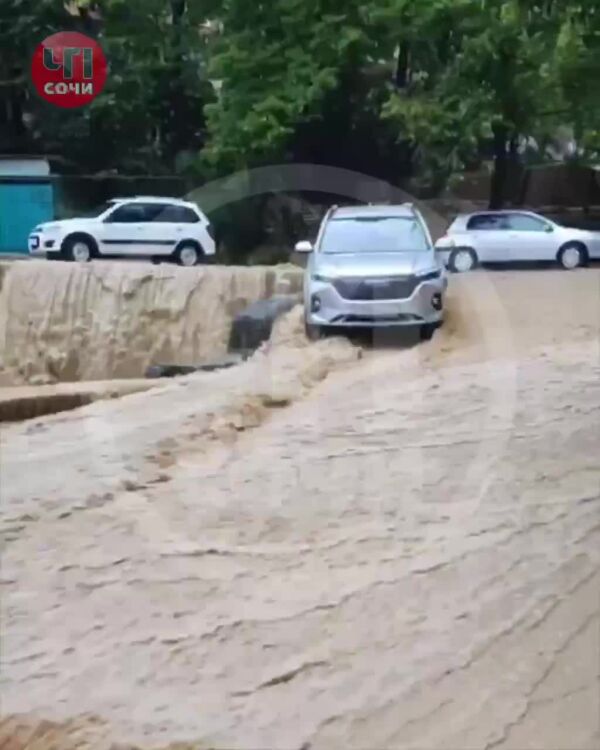 Тонут машины и дома, бьют дождевые фонтаны: в Сочи объявлено штормовое предупреждение из-за ливней